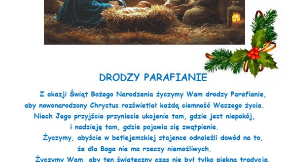 - W czasie kolędy kancelaria nieczynna. W ważnych sprawach prosimy o kontakt telefoniczny.